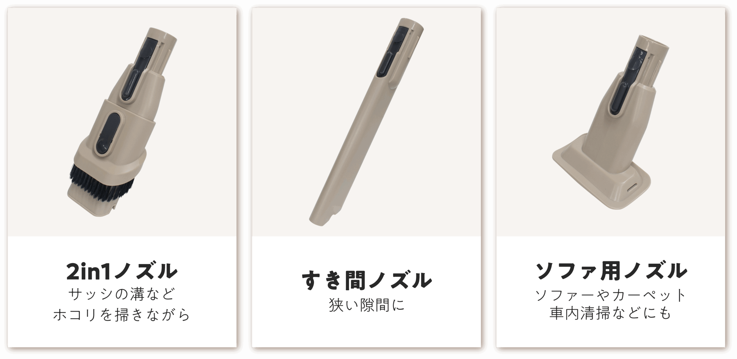 3つのアタッチメントで
